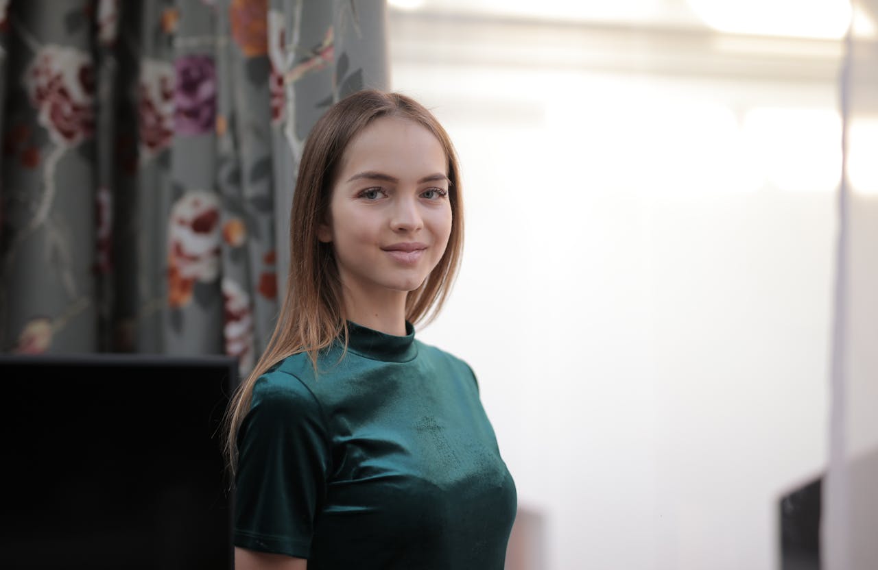 Makijaż powinien harmonizować z zieloną sukienką, nie konkurując z nią, lecz ją uzupełniając.
